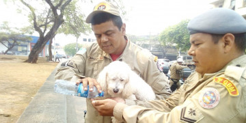 Agetrat e Bombeiros resgatam poodle que ficou preso dentro de carro