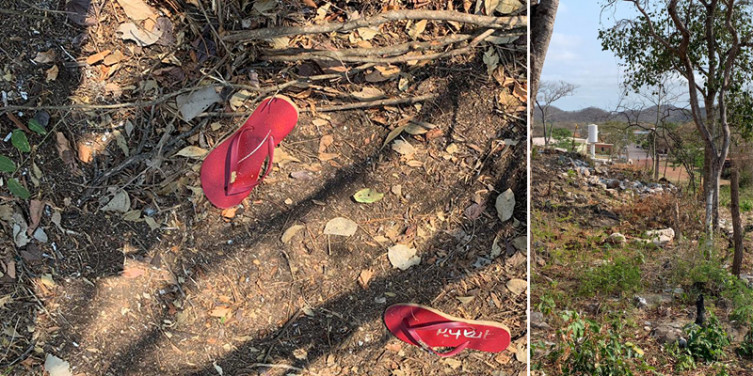 Durante as buscas e conversas com moradores, a equipe policial encontrou algumas das casas "invadidas" e também fez buscas pelo morro. Ainda foram checados alguns "trilheiros", mas nenhuma motocicleta foi encontrada.Dando sequência às buscas e seguindo uma trilha, a equipe inicialmente sentiu um forte cheiro vindo da mata e a poucos metros encontrou um par de chinelos, duas garrafas e uma mancha de sangue.