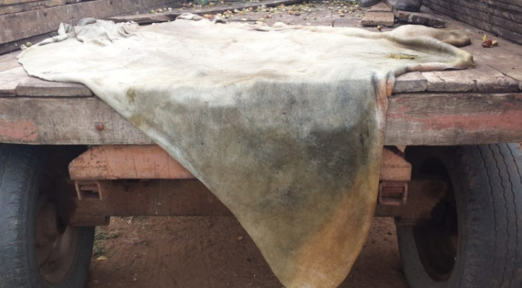 Foi dada ordem de parada e os investigadores constataram que na carroceria do veículo, estava nelore abatido e dividido em partes e com os miúdos, que pesaram aproximadamente 150 kg.
