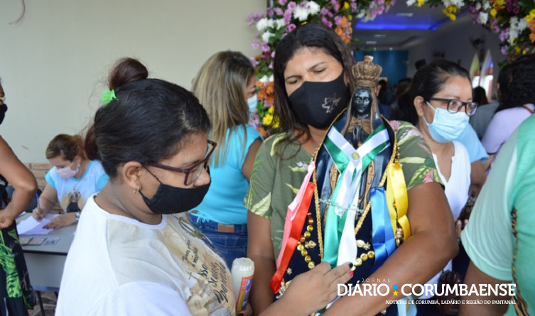 Muito emocionada, Raianne Franco Marcondes, estava acompanhada do marido, cada um segurando uma imagem da santa. Chorando muito, ela contou ao Diário Corumbaense que era de agradecimento pela sua vida, após um susto no último domingo (10).