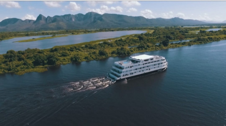 Barco-hotel segue lentamente nas águas mansas do rio Paraguai
