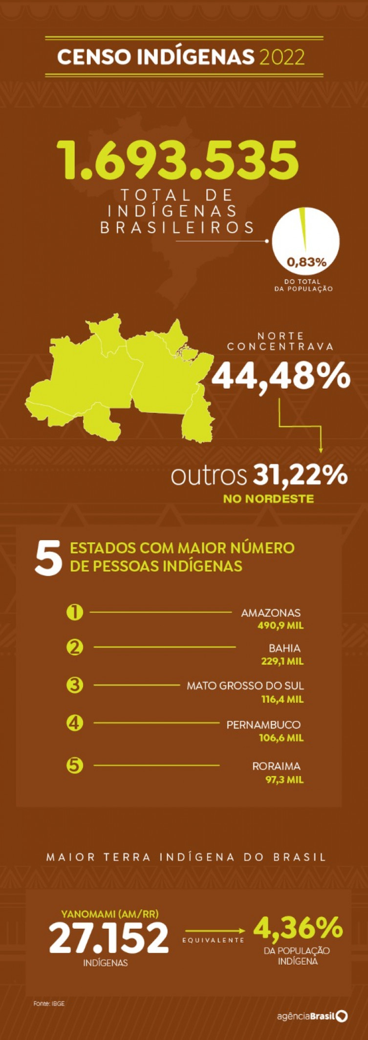 No Censo de 2010, o IBGE contou 896.917 pessoas indígenas, o que correspondia a 0,47% da população residente no país, revelando que a população indígena variou 88,82% em 12 anos. O Censo 2022 encontrou um maior número de terras indígenas oficialmente delimitadas passando de 501 em 2010 para 573 no ano passado.