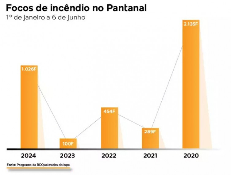 Em seus primeiros meses, 2024 registrou a metade dos focos que 2020 registrou. Mas são cerca de 50% de diferença que já preocupam e fizeram entidades como o WWF emitir alerta, considerando que os meses mais severos da seca ainda não chegaram.Inteligência Artificial