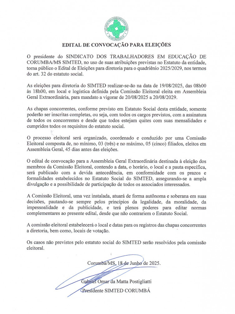 Edital de Convocação para Eleições Simted