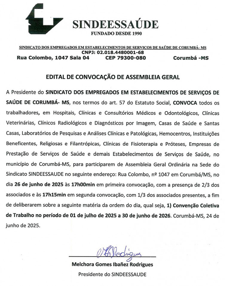 Edital de Convocação de Assembleia Geral - SINDEESSAÚDE