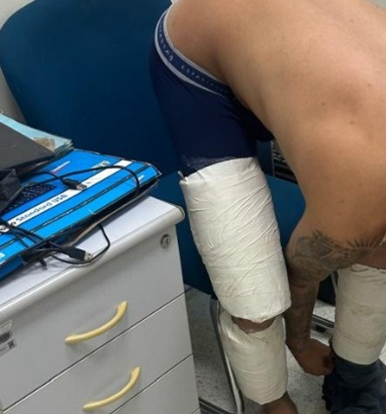O entorpecente estava junto às pernas do indivíduo, acondicionado em invólucros especialmente preparados para o transporte.