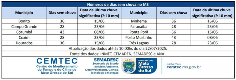 Reprodução Dados sobre dias sem chuva em Mato Grosso do Sul