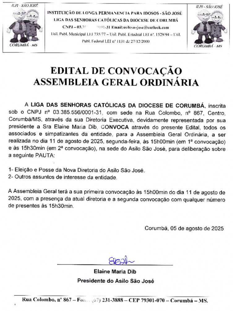 Edital de Convocação - Assembleia Geral Asilo São José