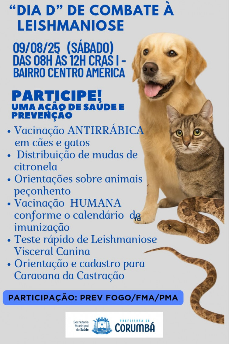 Entre os serviços oferecidos estão vacinação antirrábica para cães e gatos, distribuição de mudas de citronela, orientações sobre animais peçonhentos e vacinação humana conforme o calendário de imunização. Também é realizado teste rápido para detecção de leishmaniose visceral canina e há orientação e cadastro para a Caravana da Castração, que inicia na segunda-feira (11), no município.