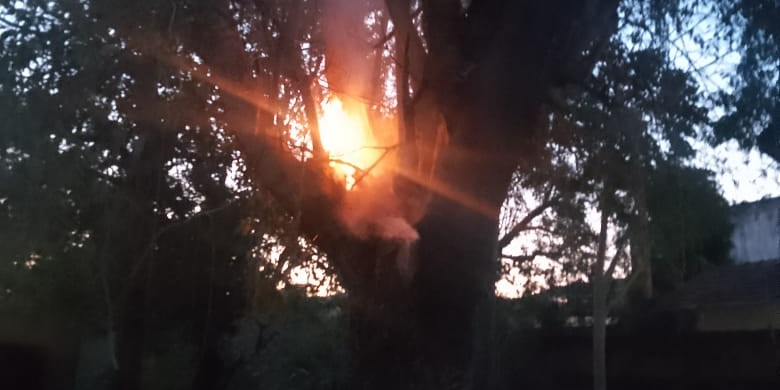 Fogo em tronco de árvore gera preocupação e riscos, alertam bombeiros