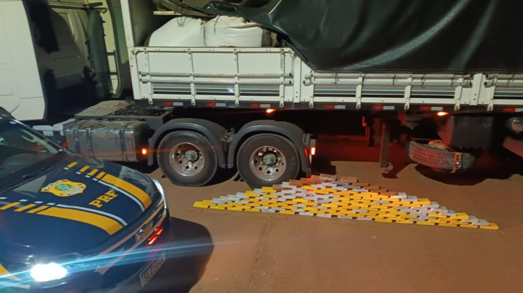 Durante a vistoria, os policiais identificaram um compartimento não original no assoalho do semirreboque. Parte da carga foi retirada para permitir o acesso ao espaço, onde foram encontrados 125 tabletes de cloridrato de cocaína, pesando cerca de 130,4 quilos, e outros 10 tabletes de pasta base, com peso de 10,15 quilos. No total, a apreensão somou 140,55 quilos de droga.