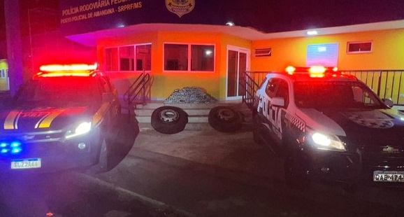 O motorista demonstrou nervosismo durante a entrevista, o que levantou suspeitas. Uma busca minuciosa foi feita, com o apoio de cães farejadores da Polícia Militar, e encontrados os tabletes da droga nos estepes da carreta.