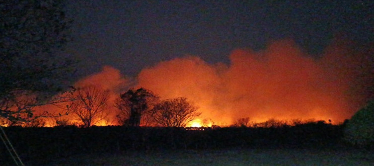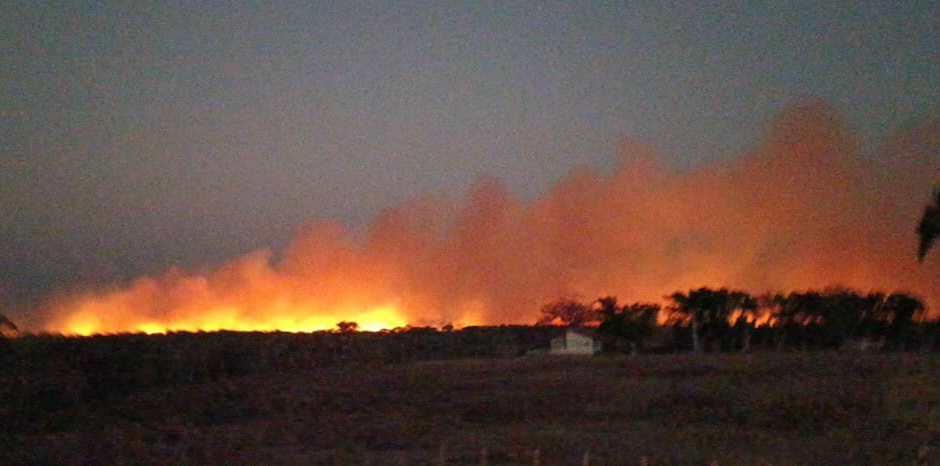 Imagens enviadas a este Diário, mostram a dimensão do foco de incêndio. Segundo o chefe da Brigada Prevfogo Pantanal, o fogo atinge o lado esquerdo e direito da Apa Baía Negra.