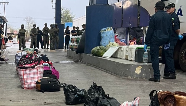 Durante abordagem da PRE, um ônibus que transporta passageiros bolivianos foi levado até o posto de fiscalização. Na inspeção veicular, os cães de faro do 7º BPM e da Marinha apontaram a presença de drogas em dois locais distintos: uma lixeira e no vaso sanitário do posto.
