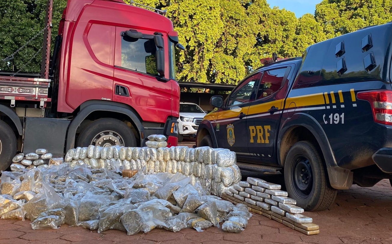 A dupla estava em um caminhão Scania/P320 B8X2, de cor vermelha. Durante a fiscalização, o motorista afirmou que o veículo estava vazio e que havia transportado uma carga de leite até Anastácio, mas não apresentou nota fiscal. Os policiais, entretanto, perceberam que havia uma carga coberta por lonas e amarrada com cordas na carroceria.