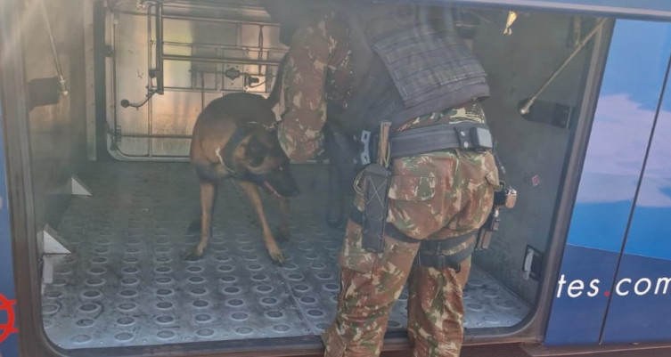 Com o apoio de um cão farejador, os militares encontraram 38 cápsulas de cocaína, com peso aproximado de 380 gramas, nos assentos onde os estrangeiros estavam.