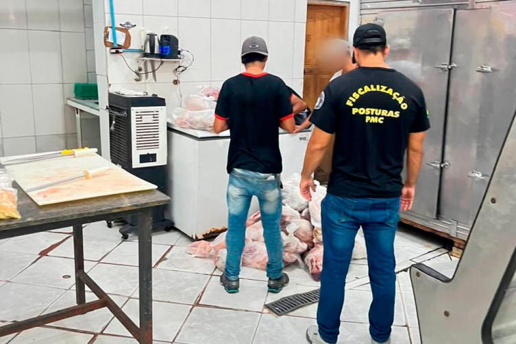 Segundo a fiscalização, os produtos estavam com a data de validade vencida e parte deles era armazenada de forma inadequada. Entre os itens recolhidos havia arroz, feijão e laticínios, além das carnes e frios.