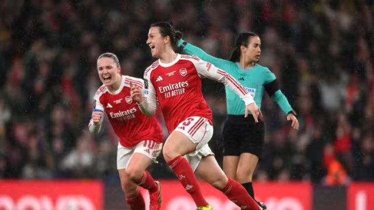 Jogadoras do Arsenal comemoram gol contra o Corinthians