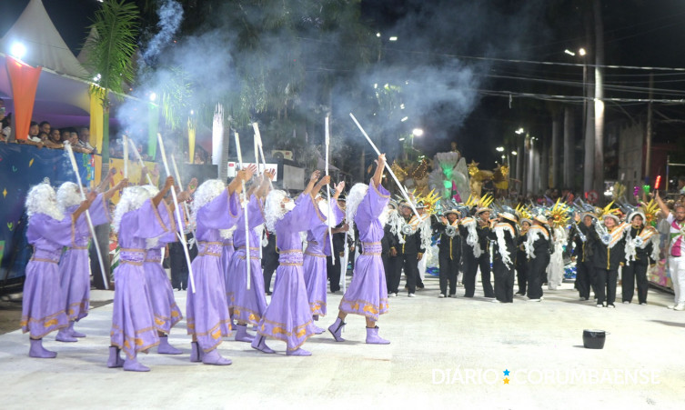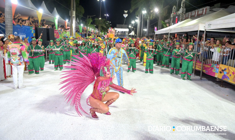 16/02/2026 Caprichosos de Corumbá encerra primeira noite com lenda amazônica e samba marcante