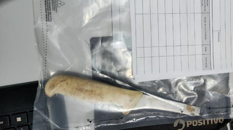 Durante a intervenção, os militares presenciaram o momento em que o acusado descartou a faca no chão. O objeto, que possuía lâmina de aproximadamente 10 centímetros, foi apreendido e encaminhado à Delegacia de Polícia Civil.