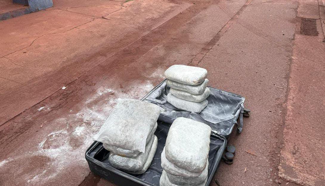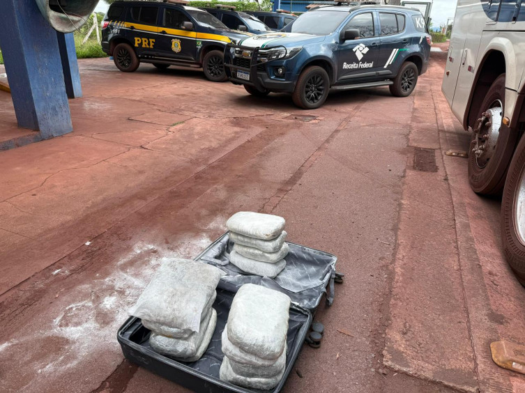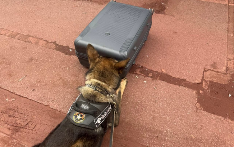 Durante a verificação das bagagens dos passageiros, o cão de faro K9 indicou a presença de droga em uma das malas. Ao ser aberta, os agentes encontraram o entorpecente.