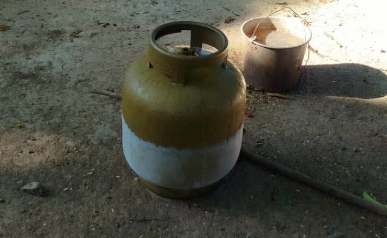 Botijão de gás já do lado de fora da casa