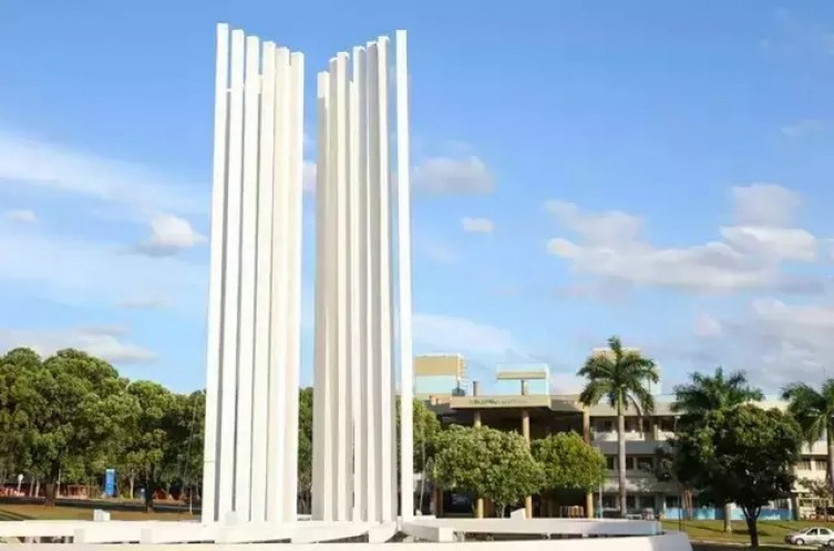 O monumento da UFMS, apelidado de Paliteiro, na entrada da instituição, na Capital