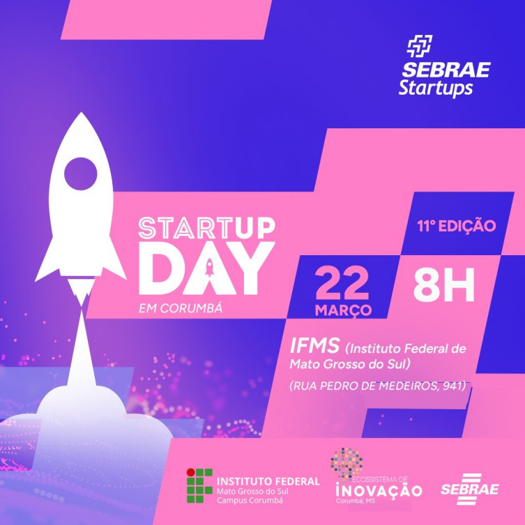 Inscrições: https://bit.ly/startupdayms