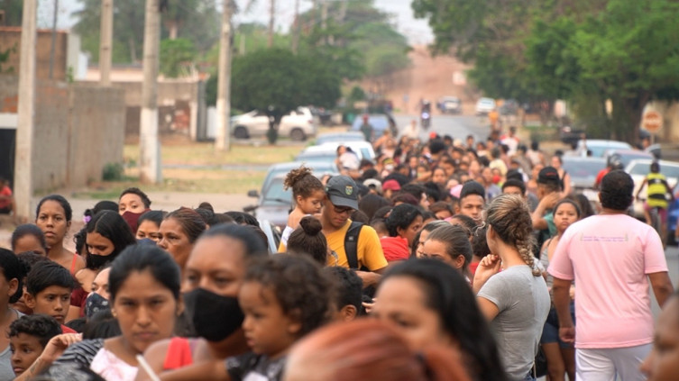 Fila em ponto de distribuição dos saquinhos de doces em ano anterior