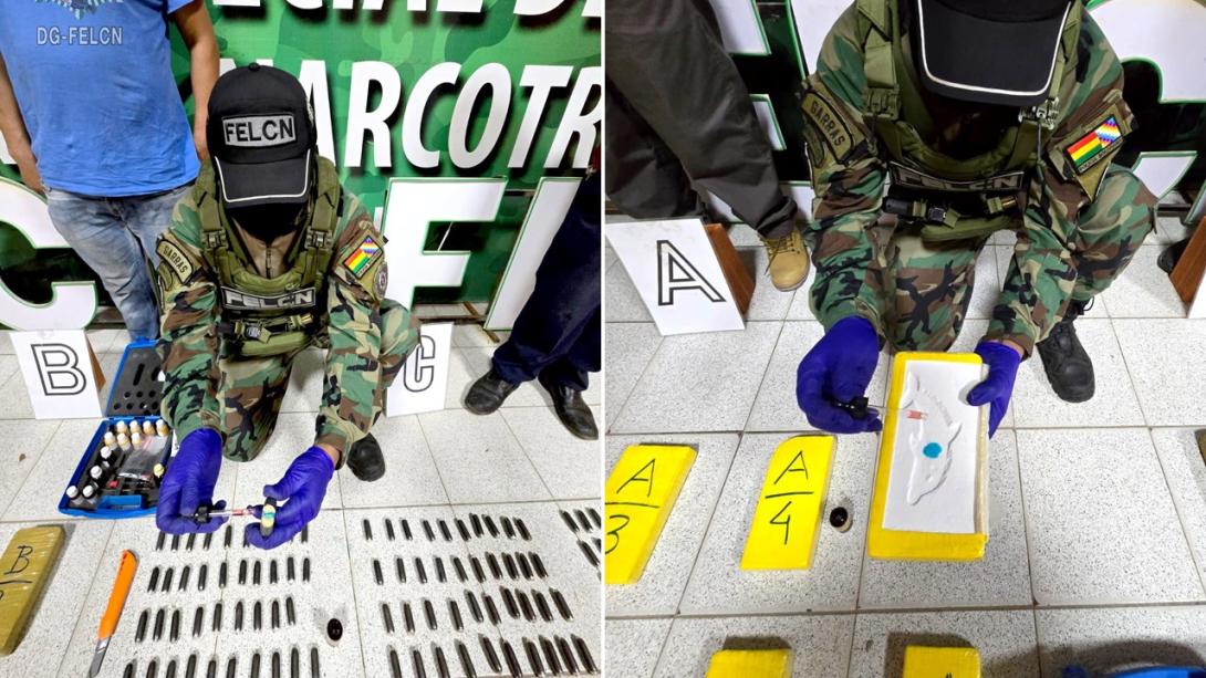 A apreensão ocorreu durante uma operação de rotina da Força Especial de Combate ao Narcotráfico (Felcn) na Rodovia Bioceânica, no departamento de Santa Cruz, que liga a Bolívia ao Brasil. Durante a revista, os agentes encontraram as cápsulas envoltas em fita adesiva transparente, além dos pacotes em formato de tijolos, embalados em cores variadas.