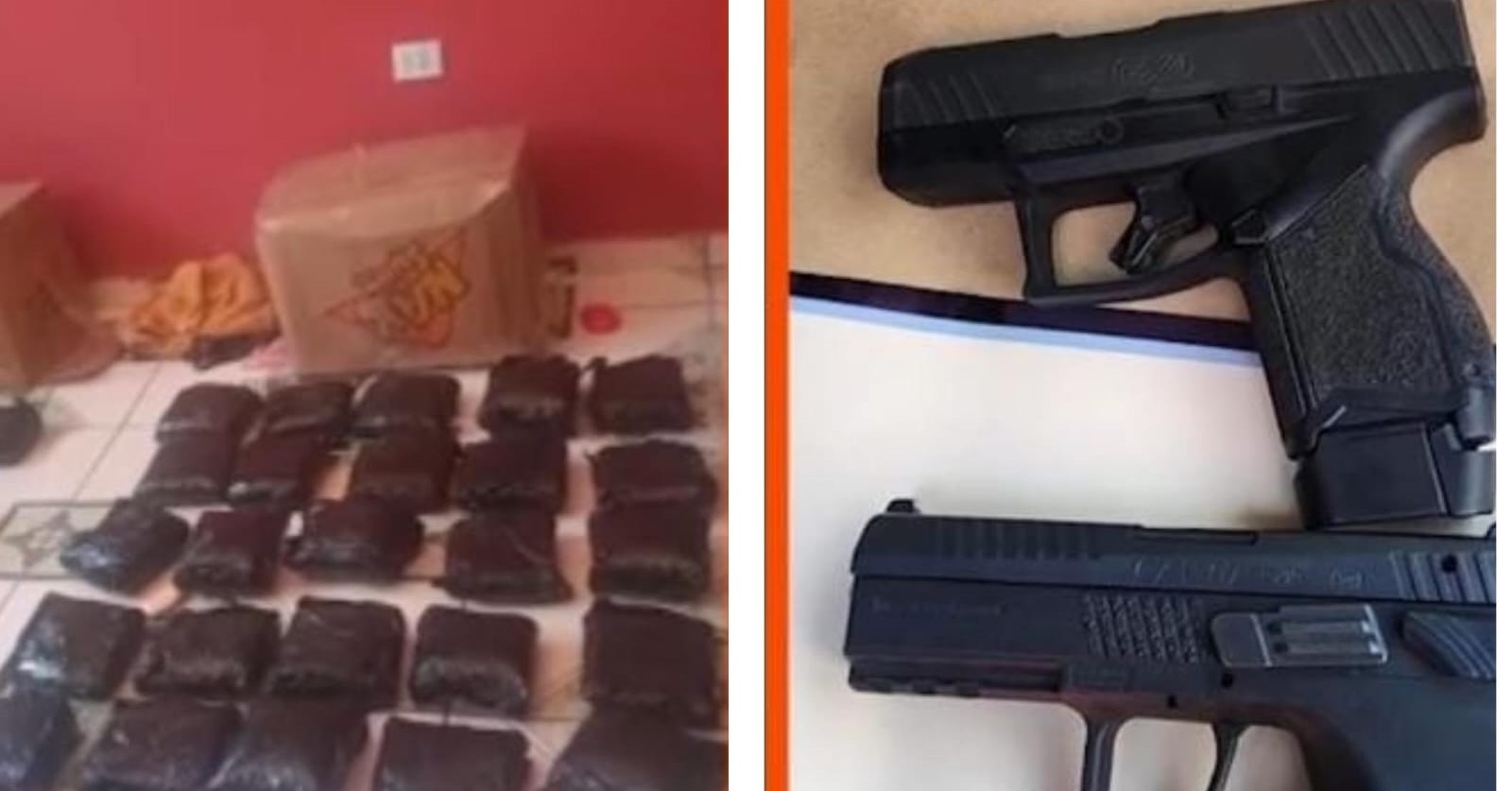 Droga encontrada em casa em Puerto Quijarro e as armas de fogo