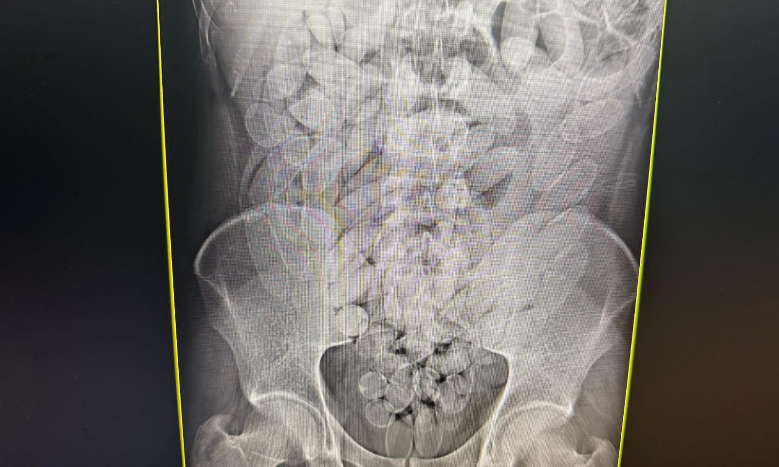 Exame de raio-x confirmou presença de cápsulas de droga no estômago de suspeito