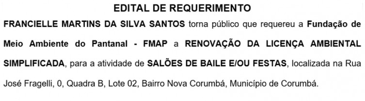 Edital de Requerimento - Renovação da Licença Ambiental