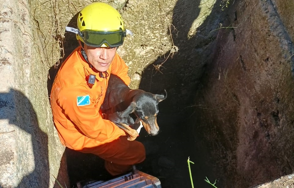 Um cachorro foi resgatado na manhã de ontem (6), por volta das 10h, após cair em uma galeria pluvial com cerca de quatro metros de profundidade, no bairro Dom Bosco, em Corumbá. A ocorrência foi registrada na rua 13 de Junho, esquina com Alan Kardec.