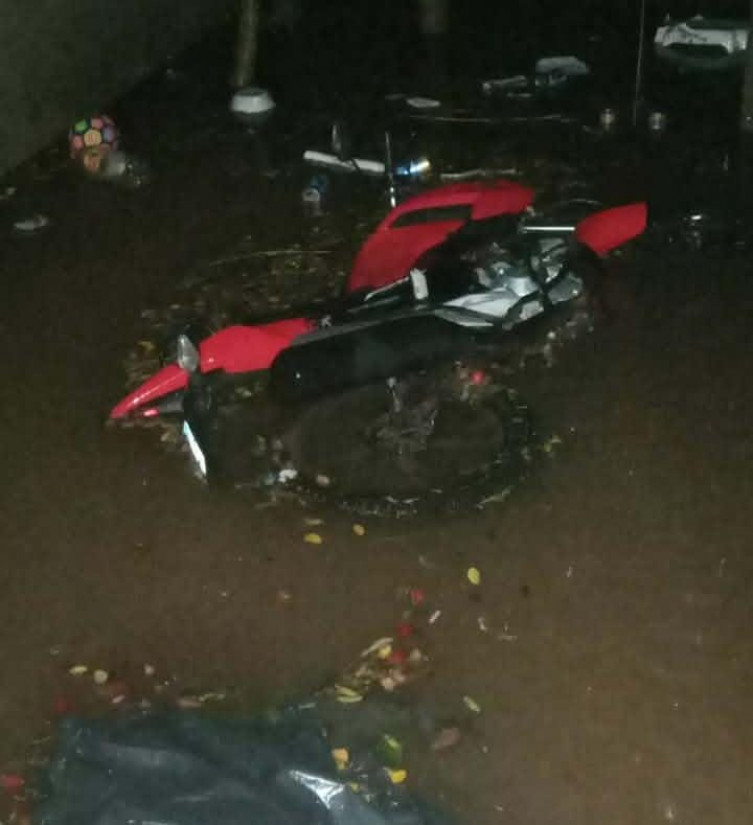 Com o rápido avanço da enxurrada, a família perdeu praticamente todos os bens. O guarda-roupa foi atingido e desmoronou, molhando e inutilizando todas as roupas. O berço do bebê e outros móveis também foram destruídos. Os únicos itens salvos foram a geladeira e um tanquinho de lavar roupas.Além dos móveis, a motocicleta da família, utilizada como principal meio de transporte e fonte de renda, também foi danificada. “Colocamos a moto no quintal, mas a água invadiu tudo e ‘engoliu’ a motocicleta. O motor foi perdido. Era com ela que meu esposo fazia corridas para trabalhar”, relatou Ana Paula.