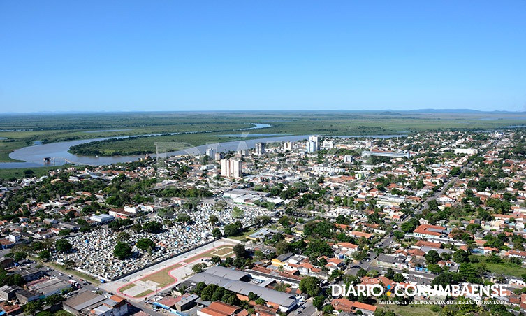 Vista aérea de Corumbá com o rio Paraguai ao fundo