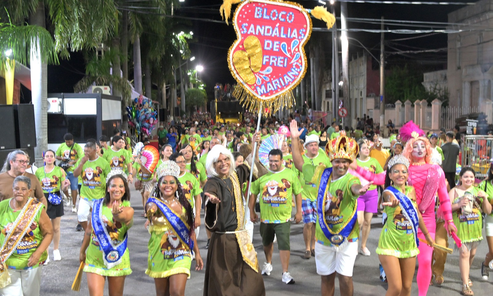Desde o ano passado, a concentração dos integrantes do bloco é no Jardim da Independência, praça histórica localizada no centro de Corumbá. A programação começou às 20 horas, reunindo brincantes, famílias e admiradores do bloco. De lá, o cortejo seguiu animado, embalado por sambas-enredo que marcaram época e, principalmente, pela irreverente marchinha inspirada na lenda de Frei Mariano de Bagnaia, foi cantado em coro ao longo do trajeto.
