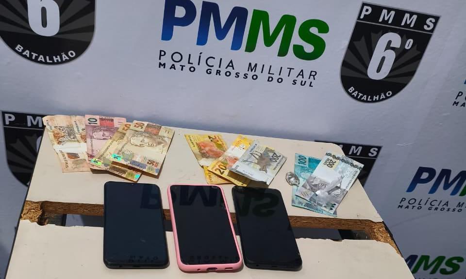 Celulares e dinheiro apreendidos com trio