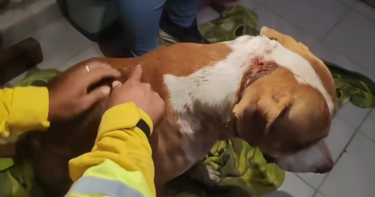 Cachorro foi salvo pelo tutor e ficou ferido
