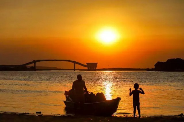 Imagem do pôr do sol no Rio Paraguai, em Corumbá