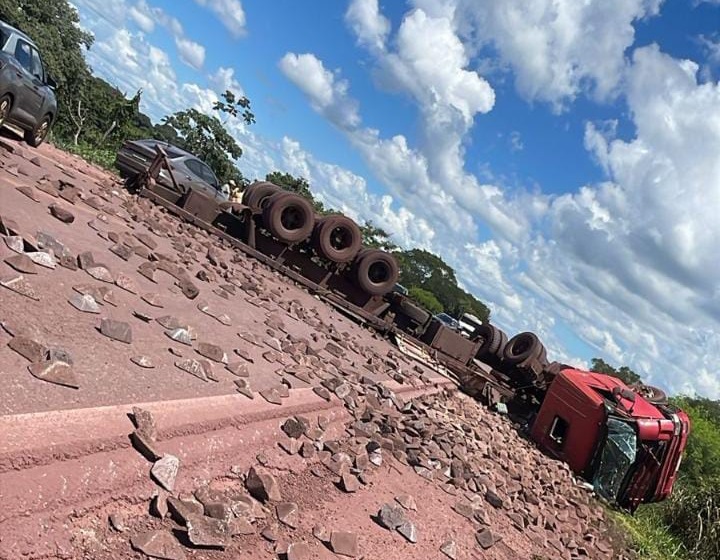 Carreta tombada no km 707 da BR-262