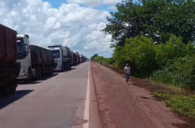 Foto enviada ao Diário Corumbaense Após o acidente, filas de caminhões de cargas se formaram nos dois sentidos da via