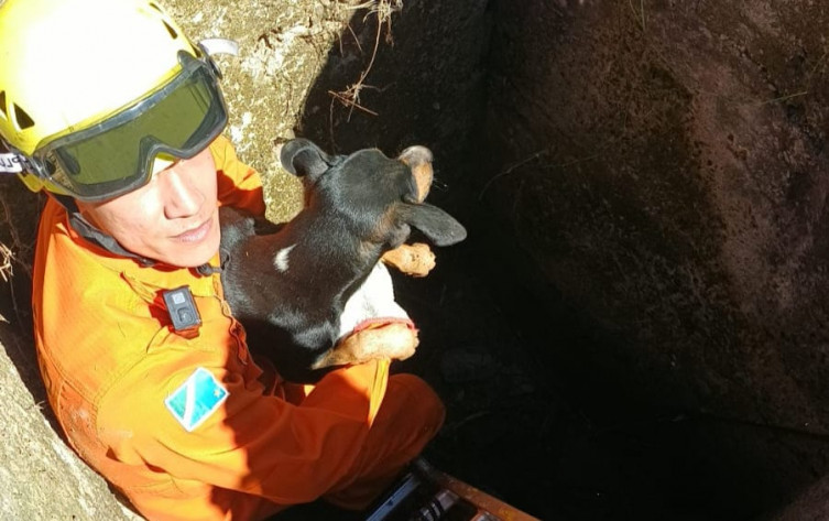 O cão foi retirado e não apresentava ferimentos aparentes. Após o resgate, ele foi entregue a uma mulher que se identificou como responsável pelo animal.