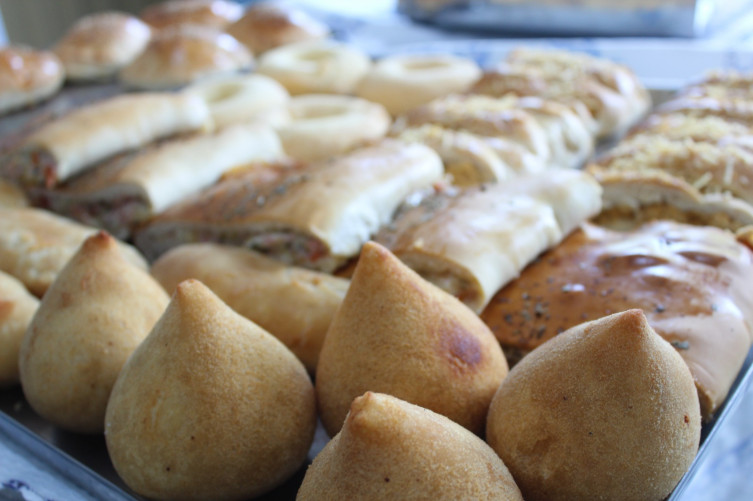 Salgados diversos são preparados diariamente pela equipe responsável pela produção